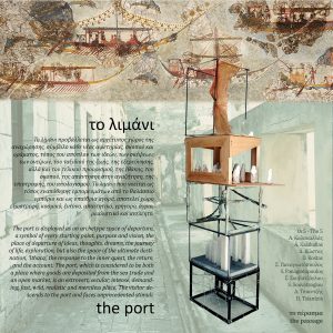 In the Flotilla fresco, the oldest known representation of a port found in the Akrotiri excavation in Santorini, the eastern part is called “Apoplus” (sailing). The exhibition focuses on the exploration of this polysemic concept, creating a multifarious environment that refer to the port as an intermediate space, a threshold between the city and the sea. Metaphorically, port, city and sea will become the symbols for action, the inner world of man and the journey of life. The complex structure of the exhibition creates semantic frameworks, which the visitor is called upon to desymbolize in the experience of his wandering.
