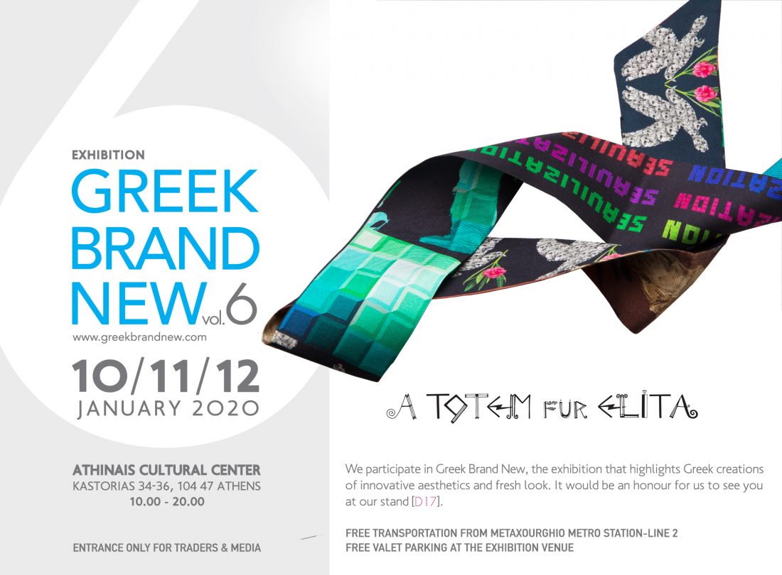 [vc_row row_type="row" use_row_as_full_screen_section="no" type="full_width" text_align="left" css_animation=""][vc_column][vc_column_text]Happy to be part of the Greek Brand New Vol 6 The most interesting -sophisticated Trade show in Greece among notable Greek designers that demostrate the creative face of Greece. Contemporary design , high branding and quality standars form the common denominator for...